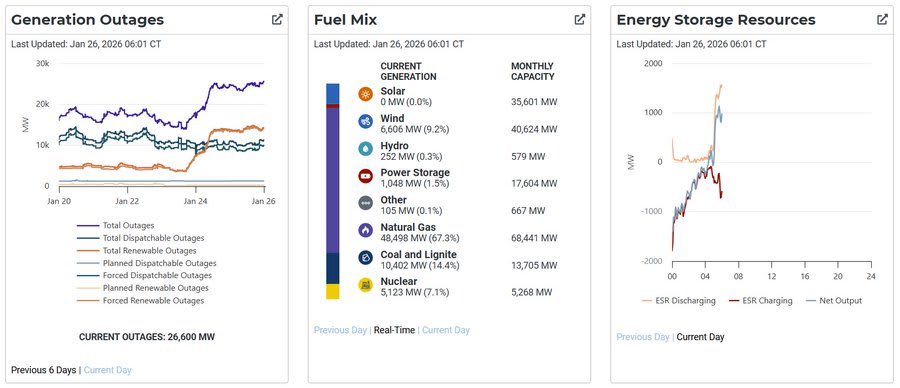 The Department of Energy ordered the manager of the Texas power grid to begin using backup generation resources at data centers and other facilities that consume large amounts of energy to help prevent blackouts. According to the agency, the order would aid the Electric Reliability Council of Texas, ERCOT, in maintaining grid operations through the “extreme temperatures and storm destruction” left by the weekend’s powerful weather event. In its 2025–2026 Winter Reliability Assessment, the North American Electric Reliability Corporation (NERC) found that the ERCOT assessment area was at elevated risk. According to NERC, above-normal winter peak and outage conditions could result in the need for operating mitigations and Energy Emergency Alerts.