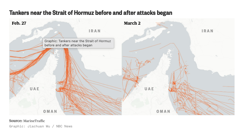 Europe’s gas storage levels were below normal when hostilities began. Still, Qatar’s inability to move LNG through the Strait of Hormuz and the closure of its LNG facility have made LNG more expensive, as the United States and Australia are running near capacity.