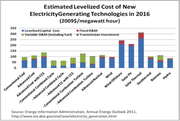 For new construction, nuclear energy is still a more expensive technology than new fossil fuel generating technologies and some renewable technologies. The Energy Information Administration publishes the cost of generating technologies in the United States on an annualized basis per kilowatt-hour of output so that those costs can be compared across technologies. On average, advanced nuclear technologies are over 70 percent more expensive than natural gas combined cycle units and 20 percent more expensive than a pulverized coal unit. It should be noted that these costs assume our current regulatory environment. In contrast, the Chinese can build nuclear power generation for about half of the cost of nuclear construction in the United States, in part because of the difference in Chinese and U.S. regulatory environments.