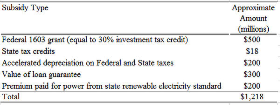 Despite Mr. Davidson’s claims, the situation with Shepherds Flat says nothing about wind’s economic viability. What Shepherds Flat shows is that wind developers, with the help of the Obama administration and state governments, have adroitly milked the American taxpayer to pay for wind projects instead of having to spend their own money. Most folks could build a project if the government put up a subsidy of two-thirds of the cost resulting in a 30% return on equity for the investors who put up 10%. Without tax credits and subsidies, it is highly questionable whether Shepherds Flat would have been built.