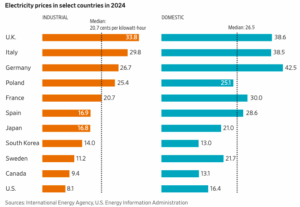 The high prices are causing economic damage to Europe, causing companies to flee and making Europe uncompetitive in the AI race.